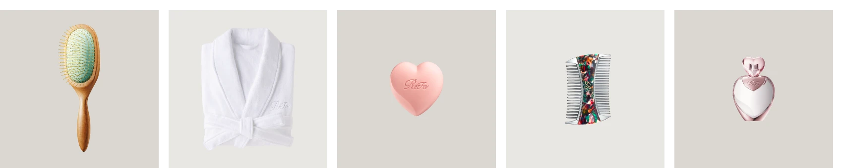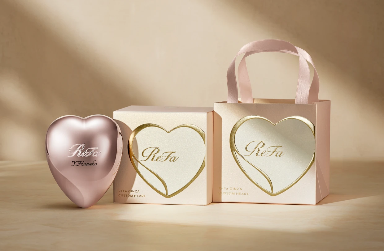 ReFa HEART BRUSHや新カテゴリのReFa LINEN、ReFa VITALWEARのスリープウェアの一部アイテムに対して、刺繍やレーザー加工による名入れをし、世界でただひとつの特別なギフトをおつくりします。また、ReFa HEART BRUSHに名入れされたお客様には、専用のオリジナルショッパーとギフトボックスで美しくお包みし、大切な方やご自身への特別なギフトとしてお贈りいたします。