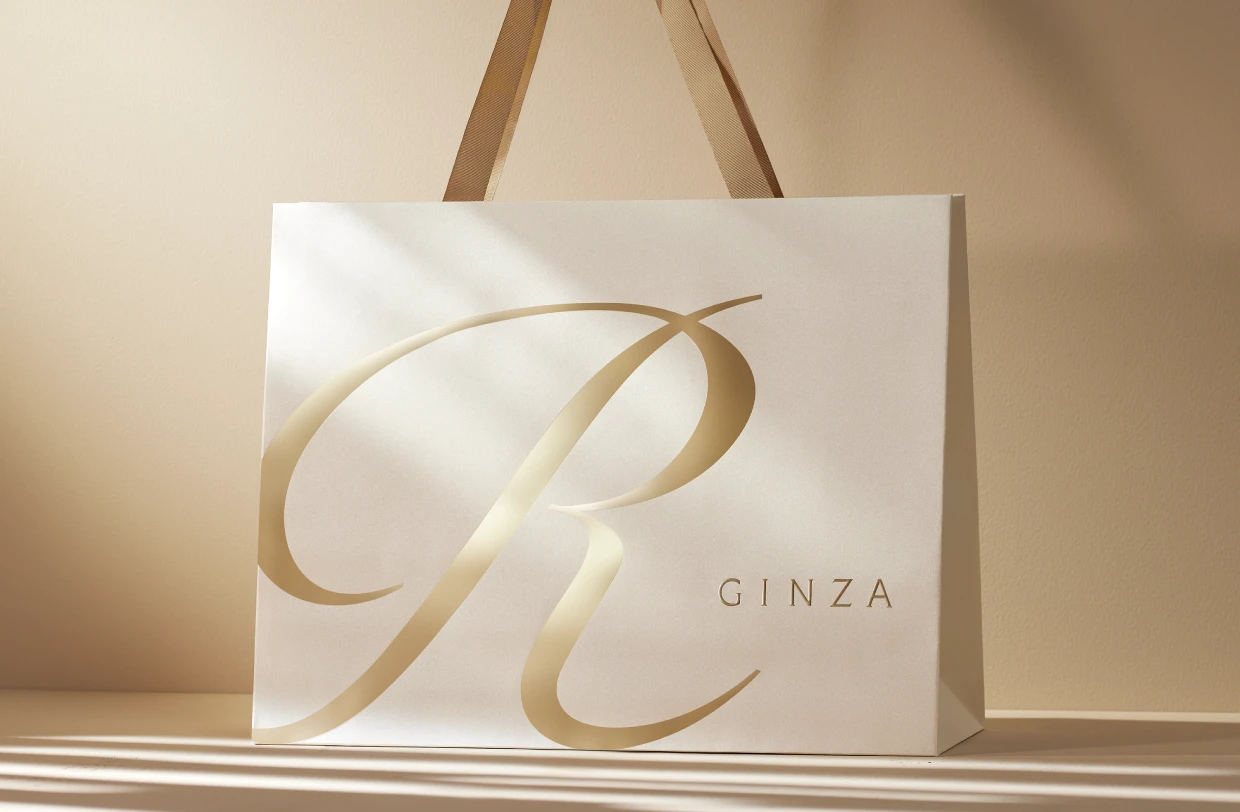 GINZAからデビューする新たなシンボル、「R」マークをダイナミックに、エレガントにデザインした銀座限定のショッピングバッグです。