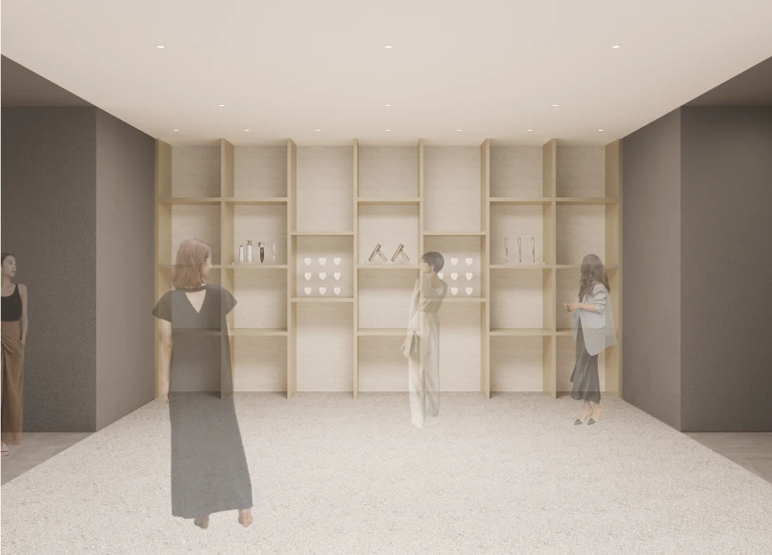 「ReFa VITALWEAR」の温かみを柔らかな杢素材と優美な曲線で象徴的に表現したフロアです。ReFaブランドが新たに展開するブランドライン「ReFa VITALWEAR」の第1号店としても位置づけられ、ルームウェア、インナーウェアに加え、スリープウェアがもたらす心ほどける着心地を肌で実感いただけます。また新たに展開するカテゴリのReFa LINENやインナービューティーに関するアイテムを幅広く取り揃えています。