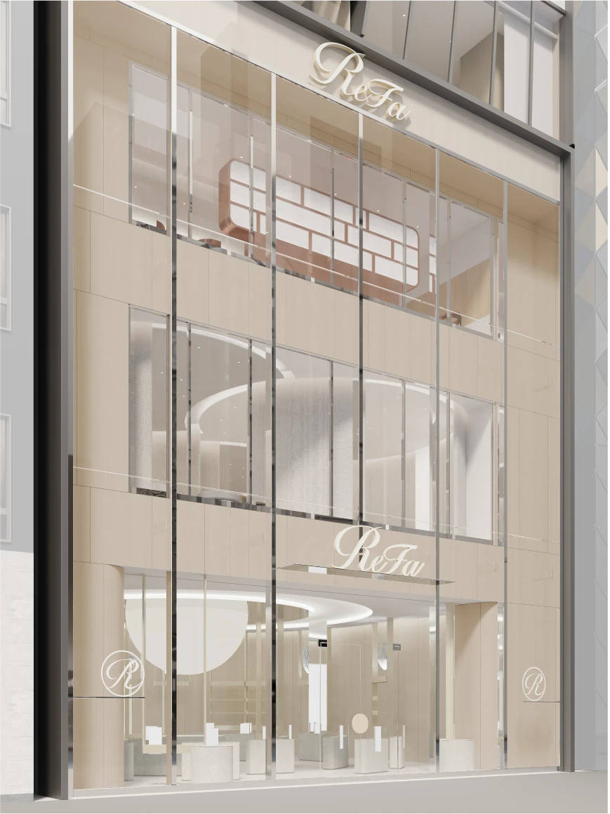 自然とテクノロジーが融合した内装となっており、店内中央に配置されたスフィアは、ReFaの”生命力あふれる美”を鼓動として表現し、訪れる人を特別な空間へと誘います。